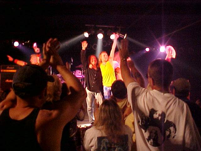 air-guitar at the same time. Must be some kinda Guiness record. Fans