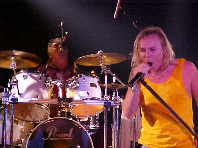 Lee gave his drums a hell-of-a beating tonight. A fan blew on him during