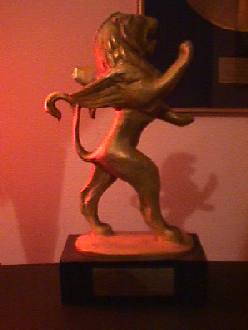 Right: The award as it is 'guarded'by Dave Owen